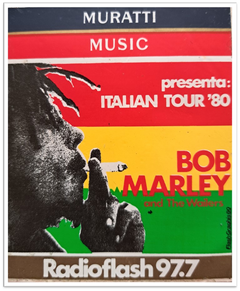 The last remaining memento of my Italian radio days. A Radio Flash Bob Marley Italian Tour ’80 sticker. I was in Italy when he died in 1981.